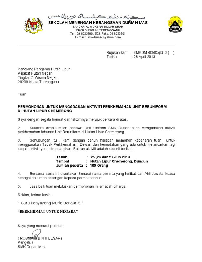 Surat Permohonan Mengadakan Perkhemahan Hutan Lipur Cemerong Pdf