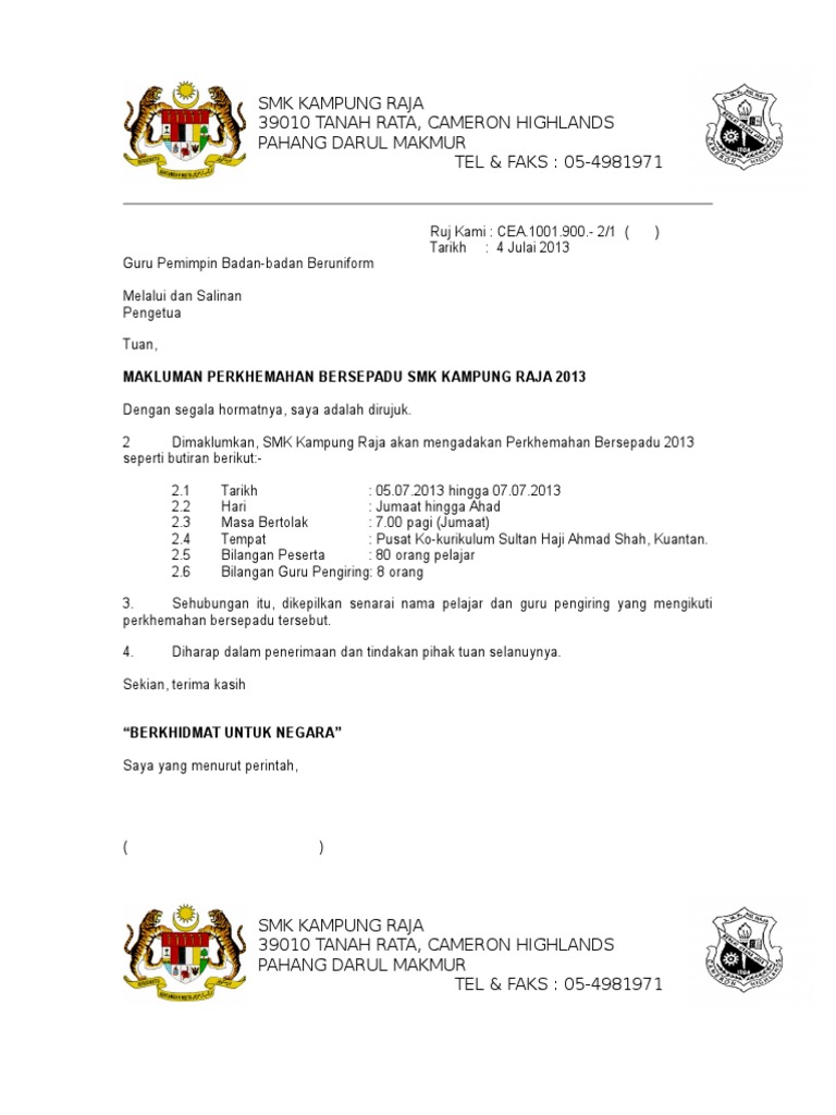 Surat Makluman Ibubapa Perkhemahan Pdf