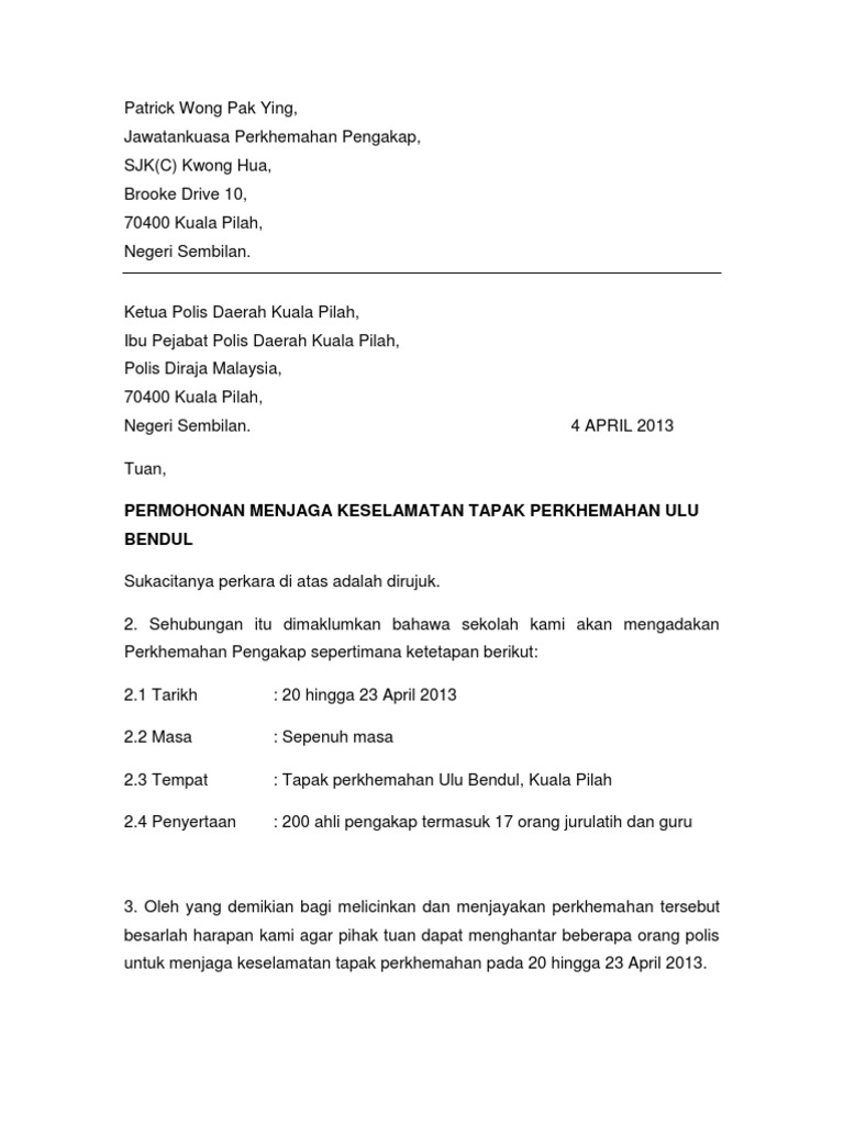 Surat Rasmi Kepada Pihak Polis Perkhemahan Pdf