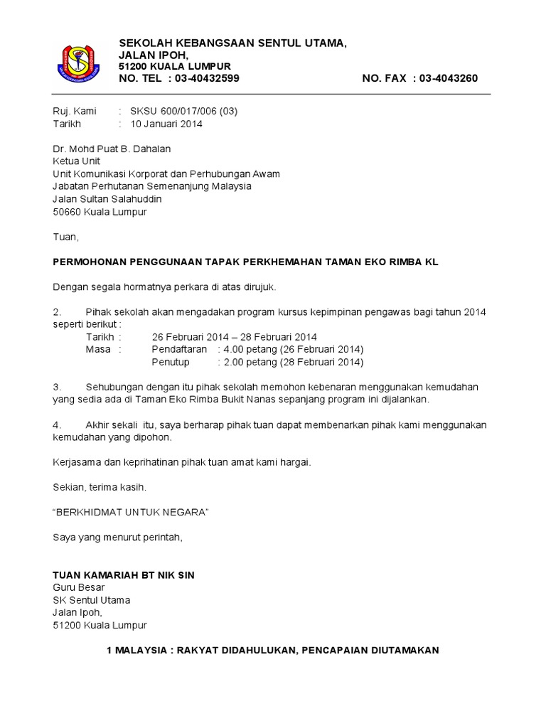 Persatuan Pengakap sekolah kamu akan mengadakan Perkhemahan Tahunan. Admin January 23 2016. Surat Kiriman Rasmi Permohonan Soalan.