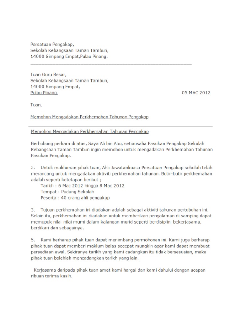 Surat Memohon Kebenaran Mengadakan Perkhemahan Daripada Guru Besar Pdf